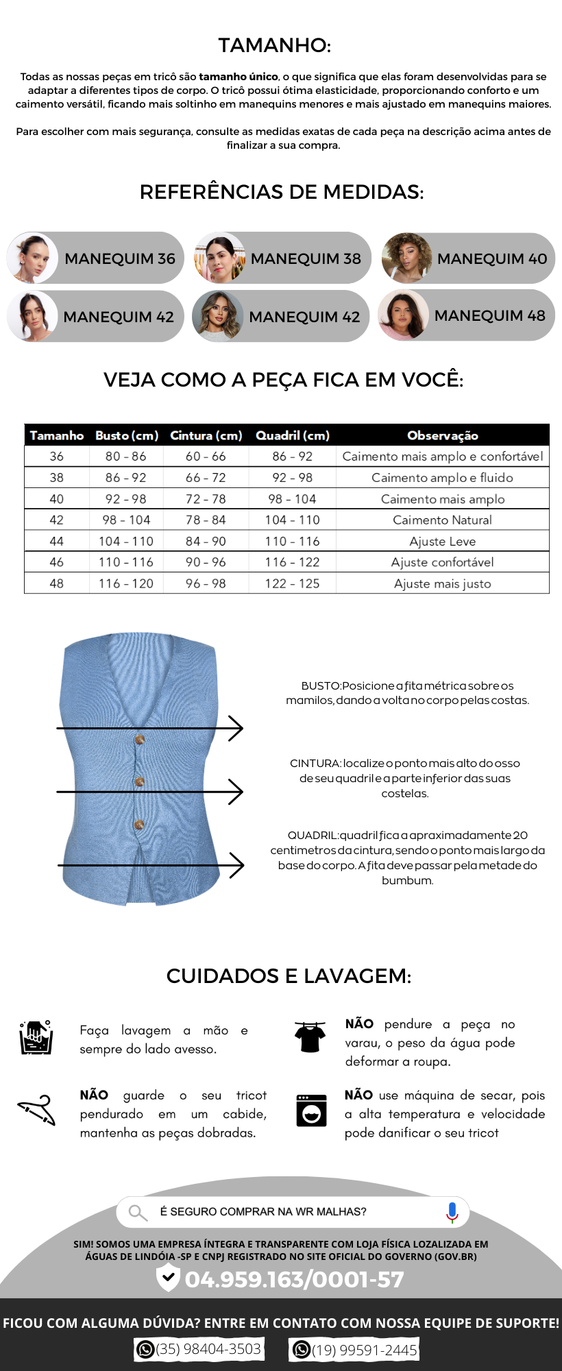 Colete produzido em fio modal com trama lisa. A modelagem é estruturada estilo alfaiataria e acompanha botões.