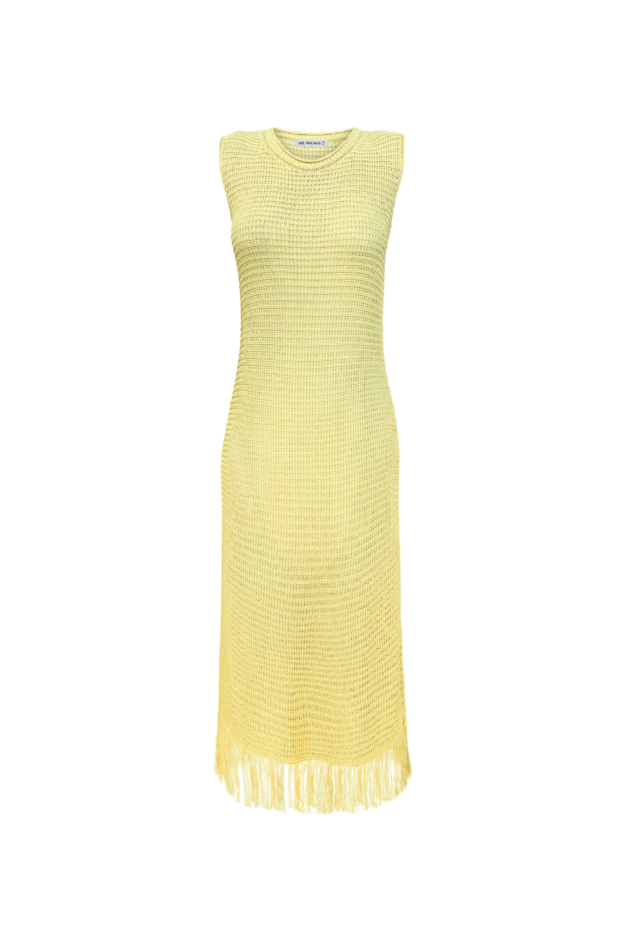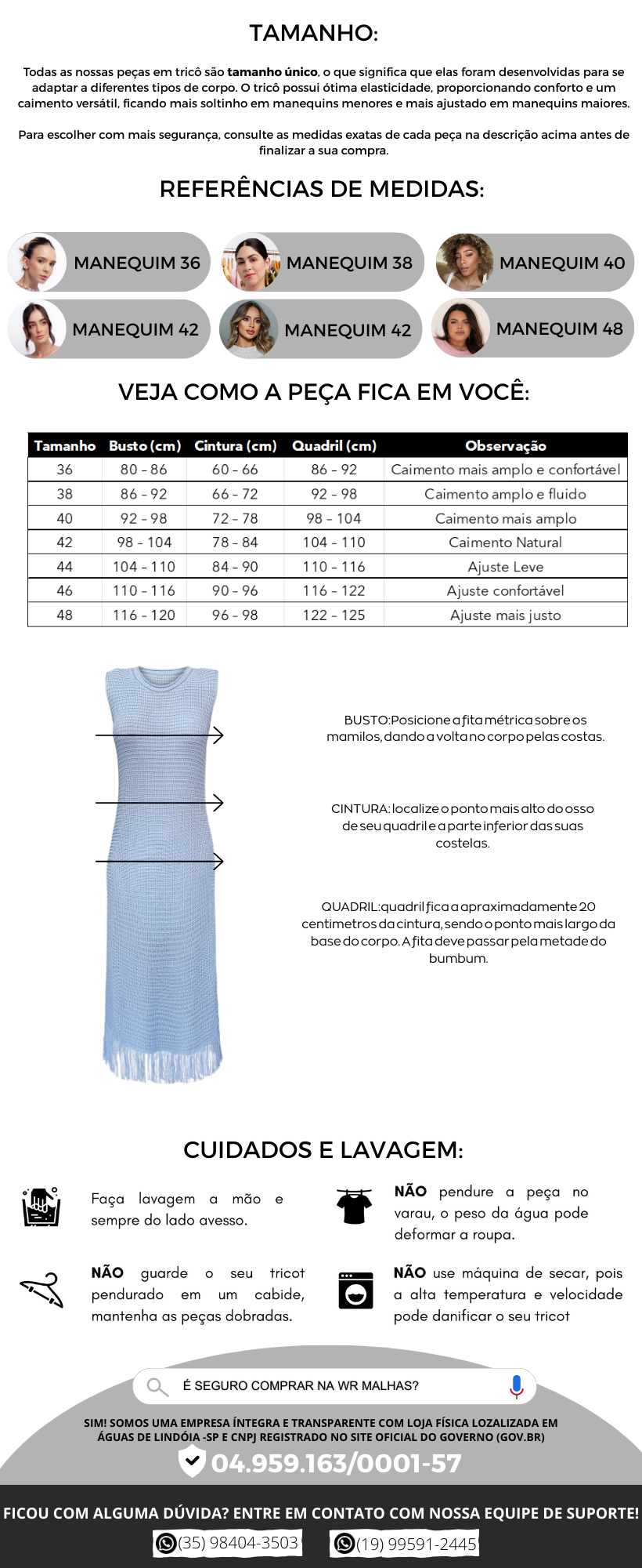 Vestido produzido em fio linha com trama texturizada. A modelagem é ampla e confortável.